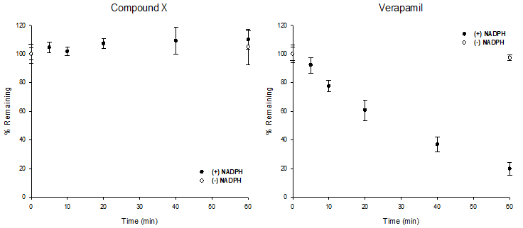Microsomal stability assay는 in vitro ADME 스크리닝 서비스 중 하나로, 시험물질의 대사과정을 이해하고, in vitro CLint와 half-life 값을 측정할 수 있습니다.